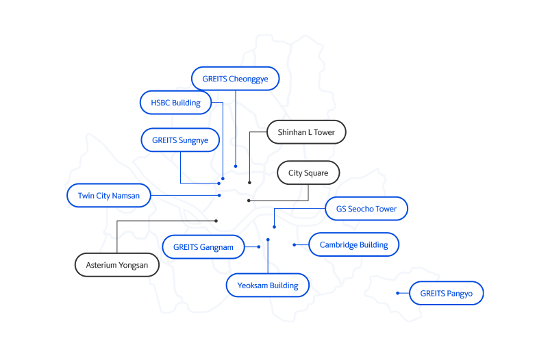 The REIT selectively acquires high-quality office assets in prime locations across Seoul and Pangyo, steadily expanding its portfolio. The portfolio is managed with a disciplined focus on tenant stability and asset value growth.